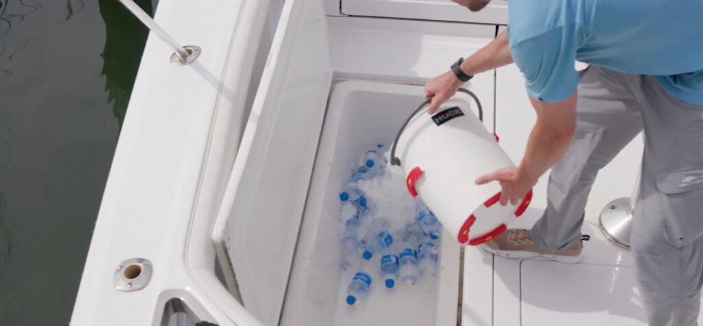 huck-bucket-tipping-out-ice-on-boat